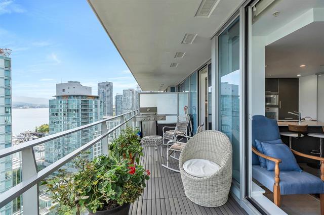 West Pender Place – luxury living in Coal Harbour. This 2 bed + Den, 2 bath, air-conditioned home on the 16th floor offers stunning views of the water, marina, Stanley Park & North Shore Mountains. Features a high-end Gaggenau kitchen with a gas cooktop, wall oven, Sub-Zero fridge & built-in dishwasher. Spa baths with marble-clad ensuite, glass shower, and freestanding soaker tub & walk-through closet. Brushed hardwood floors throughout. Generous balcony. Resort amenities: pool, rooftop terrace, gym, lounge, outdoor BBQ area and communal gardens & more. 2 parking stalls and bike room available. Parkade with EV infrastructure.