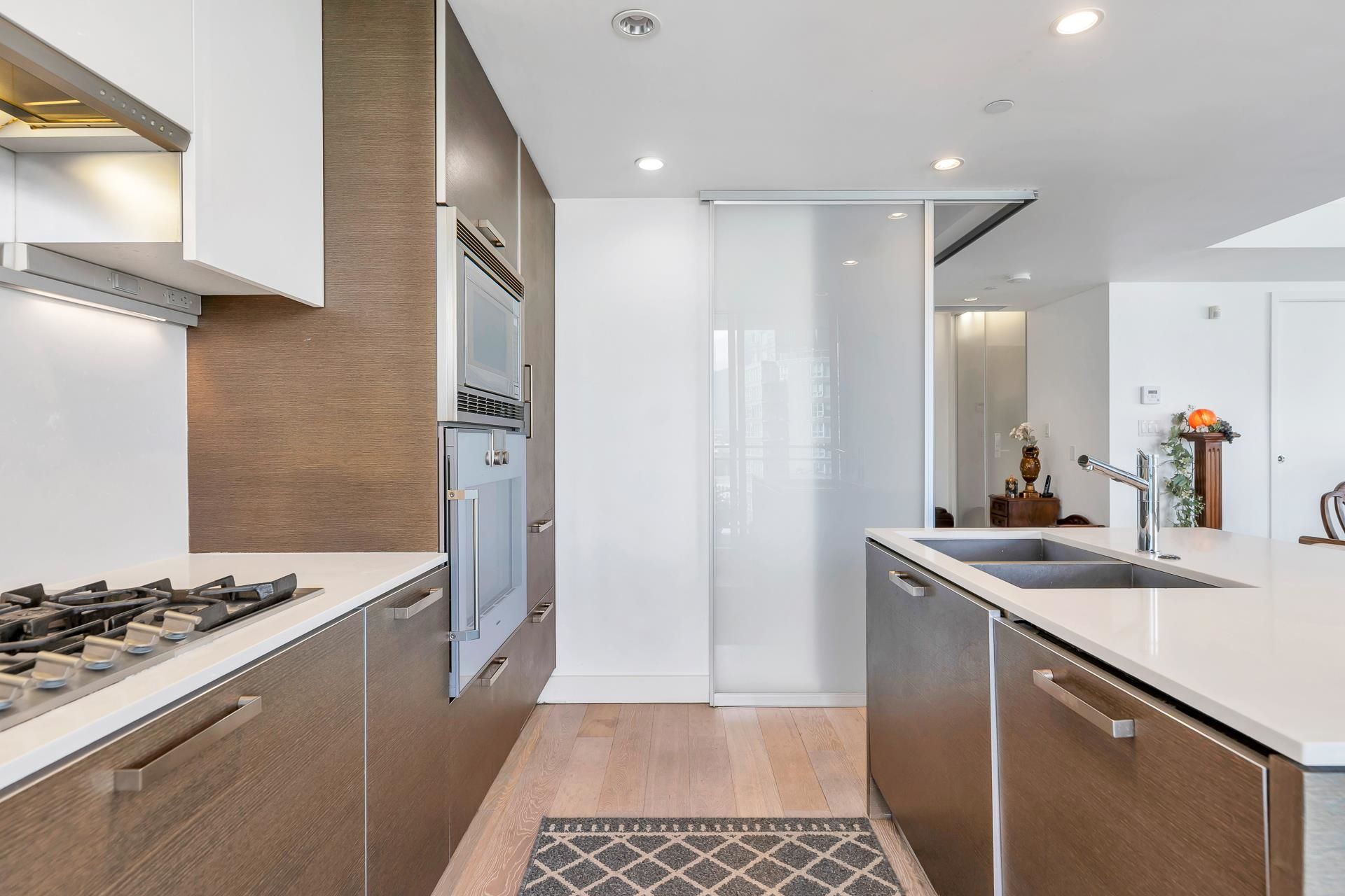 West Pender Place – luxury living in Coal Harbour. This 2 bed + Den, 2 bath, air-conditioned home on the 16th floor offers stunning views of the water, marina, Stanley Park & North Shore Mountains. Features a high-end Gaggenau kitchen with a gas cooktop, wall oven, Sub-Zero fridge & built-in dishwasher. Spa baths with marble-clad ensuite, glass shower, and freestanding soaker tub & walk-through closet. Brushed hardwood floors throughout. Generous balcony. Re…sort amenities: pool, rooftop terrace, gym, lounge, outdoor BBQ area and communal gardens & more. 2 parking stalls and bike room available. Parkade with EV infrastructure.