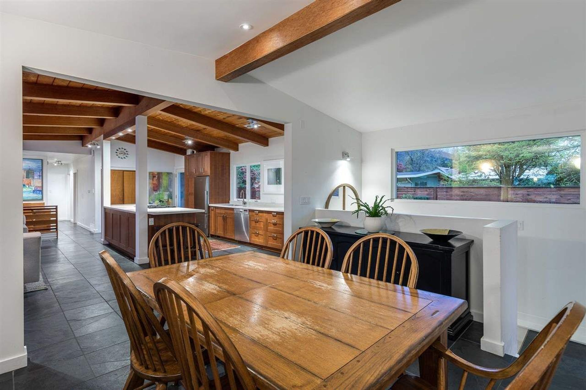 This STUNNING 1957 POST & BEAM is so PRIVATELY tucked about 200 STEPS from the core of Edgemont Village - Edgemont's best kept secret for sure!! The VIBE in the Post & Beam is so amazing as it has been immaculately kept with the vaulted ceilings and exposed wood is...truly stunning. Renovations in 2012 to kitchen, downstairs and double car garage added. The SUN-DRENCHED almost 10,000 square foot lot has incredible VIEWS of the North Shore Mountains. Highlands Elementa…ry is a 5 minute walk and the convenience of The Village is life changing. Come see and ENJOY!