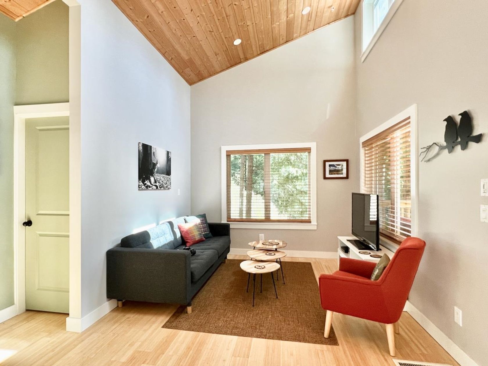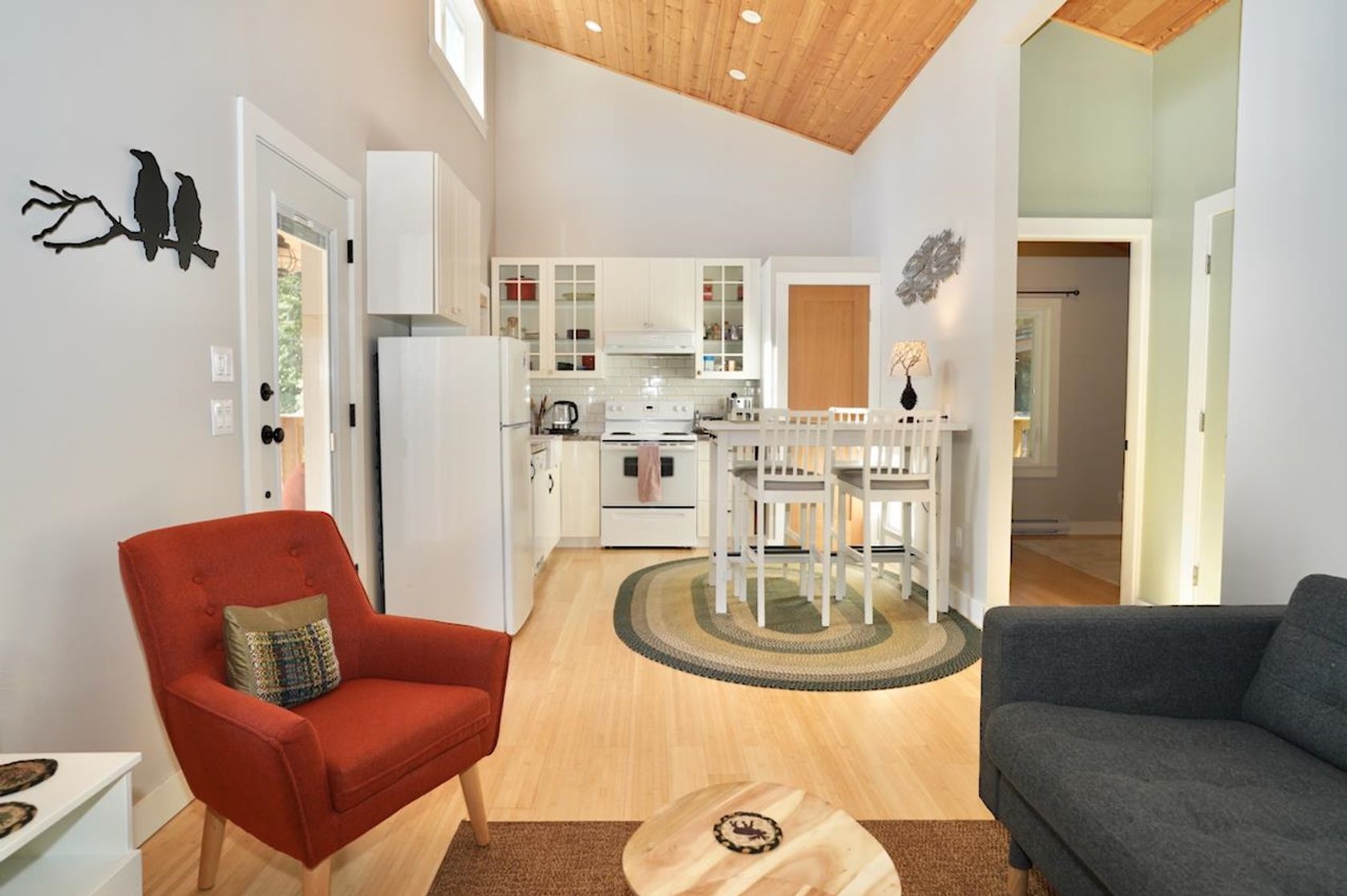 This innovative tiny cottage-home offers quality construction and organization. The vaulted ceiling and clerestory windows give openness and natural light to the main living space. Granite counters and hidden laundry in the kitchen. Two bedrooms and a full bathroom with a lovely clawfoot tub/combined shower. The private South facing covered deck allows you to relax and enjoy the array of evergreens that outline the .34 acre property. Two handy storage sheds; under the house …and next to the open parking. Easy steps to the cottage entrance and to the lower bench. A simple and peaceful piece of Mayne that is close to the ferry for easy commuting by foot.